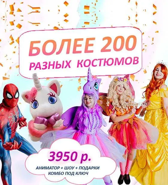 Пакет «Комбо 5 в 1» всего за 3500₽! Включает аниматора в костюме, подвиж...